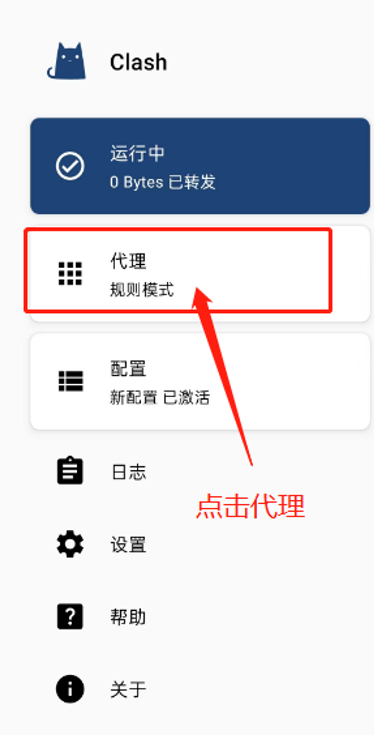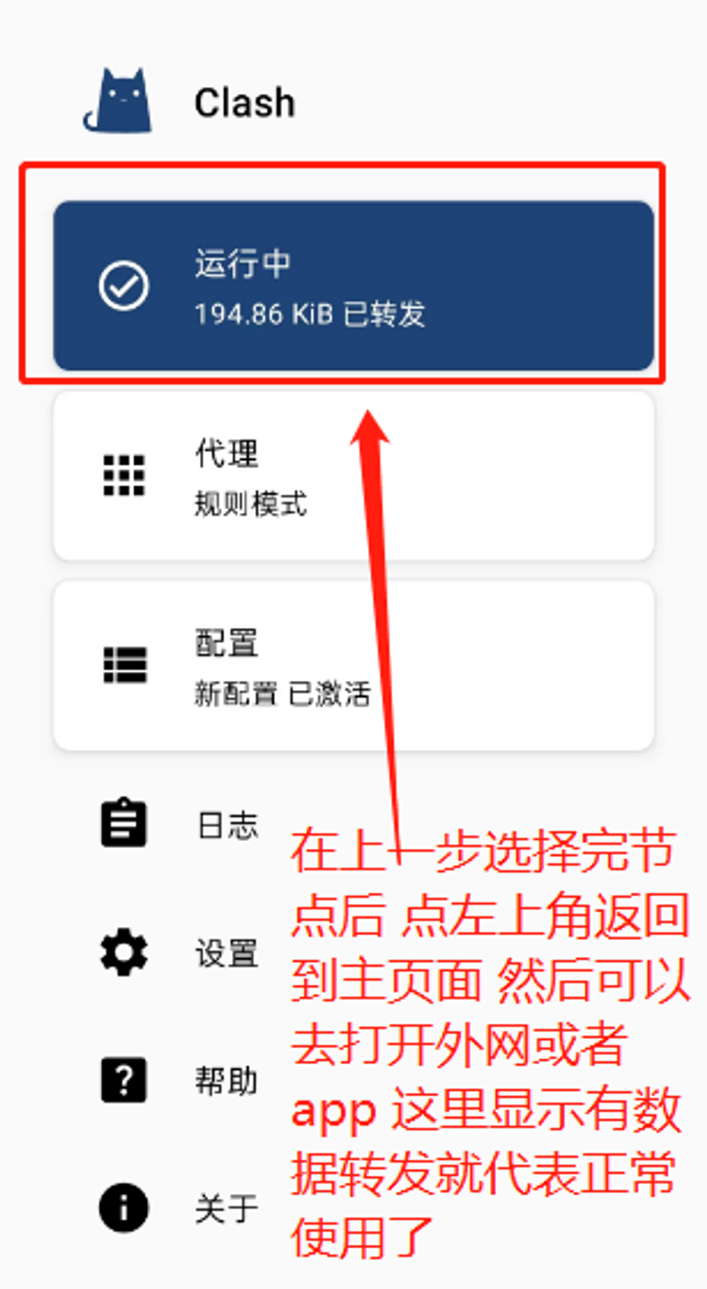 💡 点击完保存后确保当前已经选中刚才导入的配置 然后回到首页 打开开关